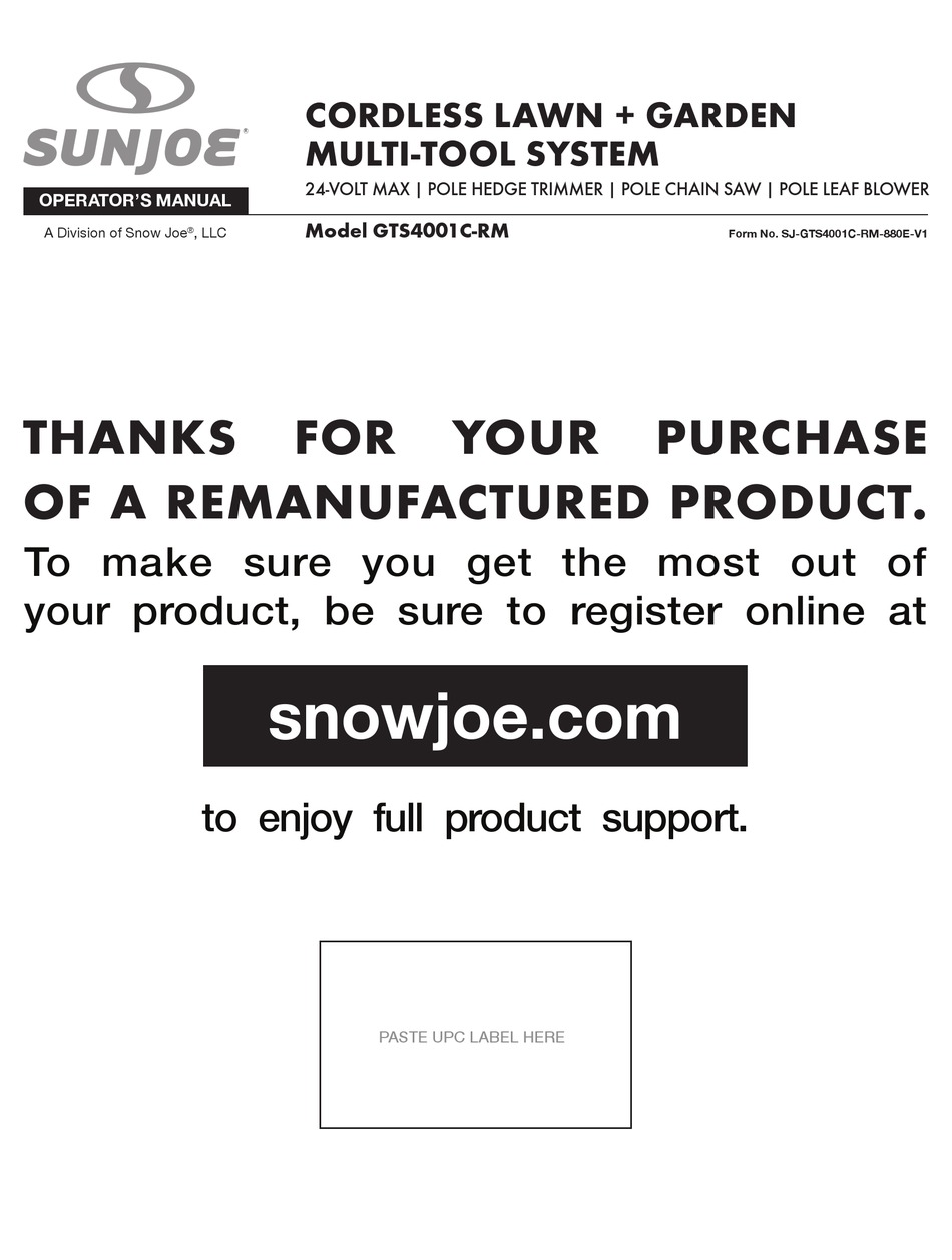 Cordless snow shovels in winter, jet blowers in fall, and mowers in spring mean that no matter what mother nature is putting up against you, you'll be prepared. Sun joe gts4001c garden tool system, (hedge. Features a telescopic pole to help reach high places. Gts4001c equipos de césped y jardín descargar manual en pdf. One pole powers three robust tools to tackle everything from trimming your tallest hedges to sawing overhead limbs and logs and blowing leaves.